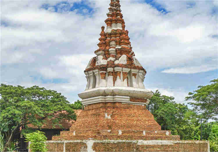 The Stupa of Wat Phra That Sam Muen is named after the local lake, representing the artistic style of the Lanna Kingdom in northern Thailand. The brick stupa stands on a five-story square base, and each layer is gradually reduced. The ancient city of Siam restored the stupa in its original size.